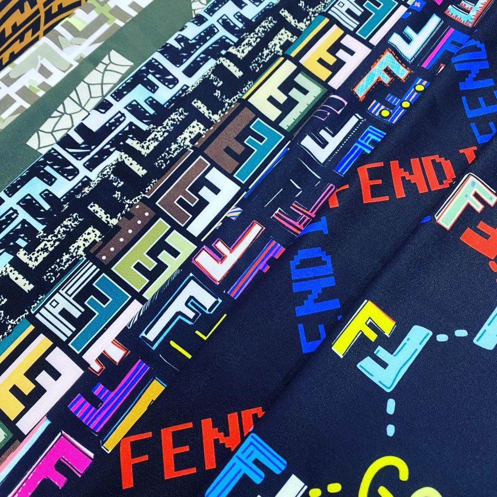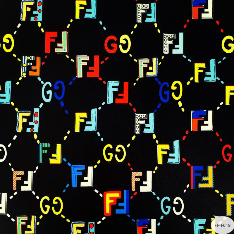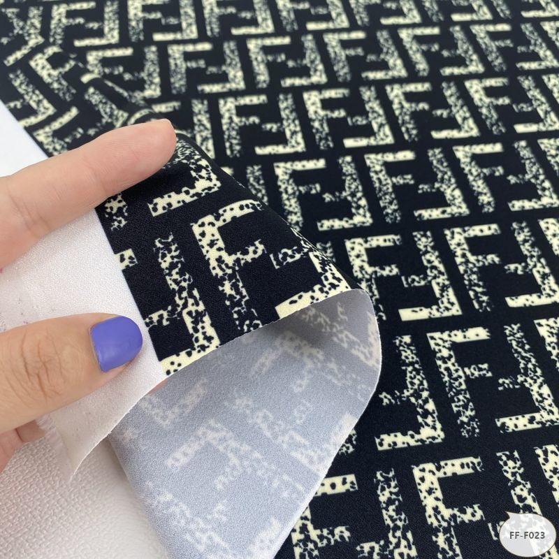Designer inspired Fendi Pattern digital printed four way spandex fabrics