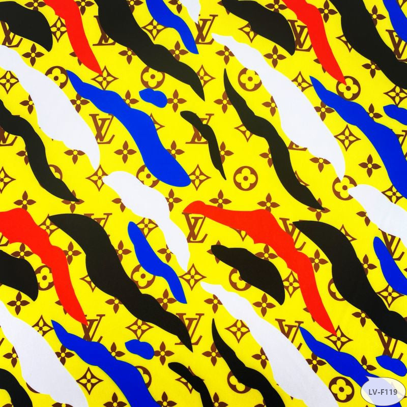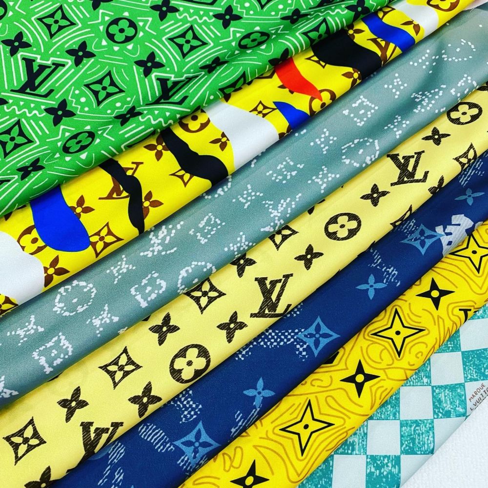 Designer inspired LV Pattern digital printed silky satin fabrics