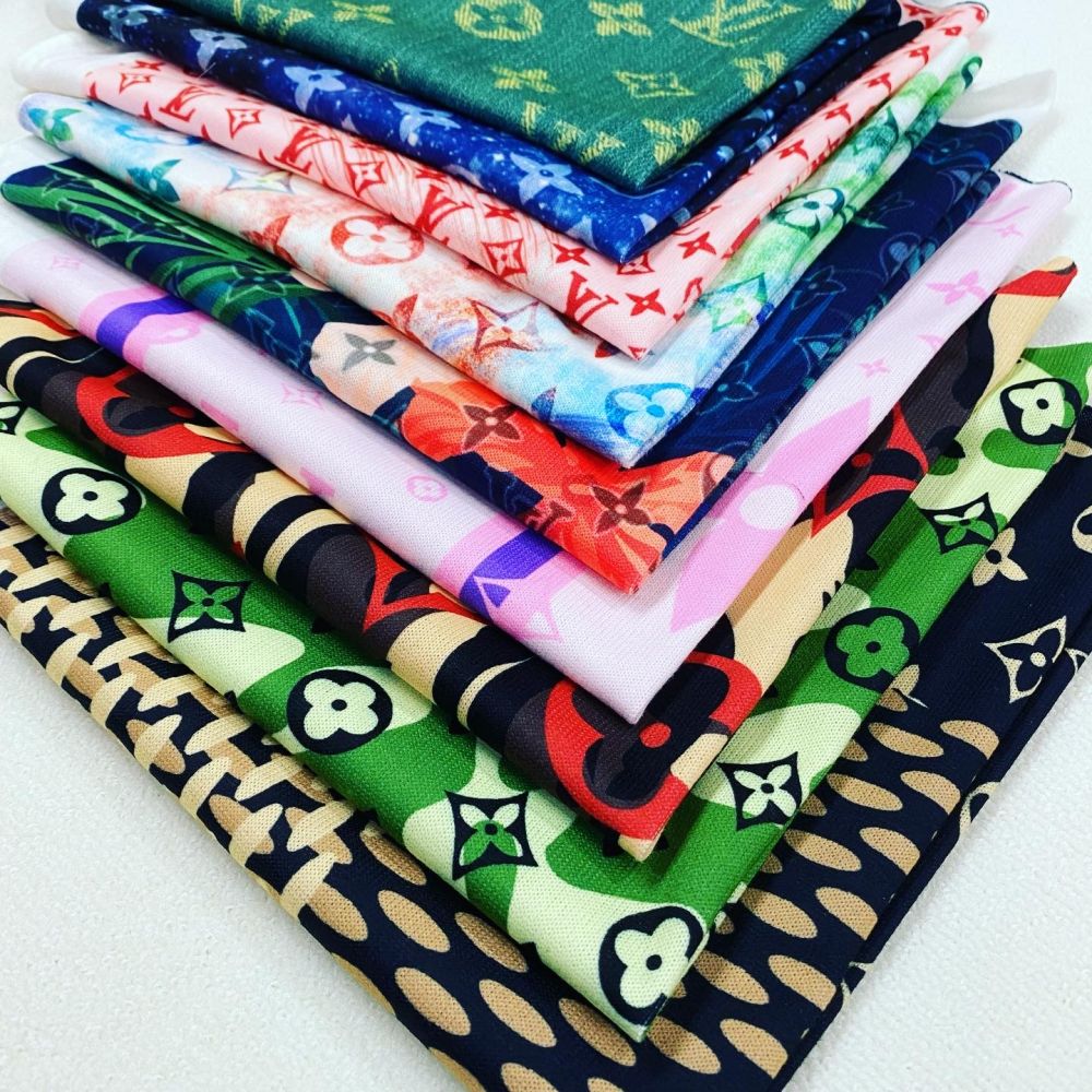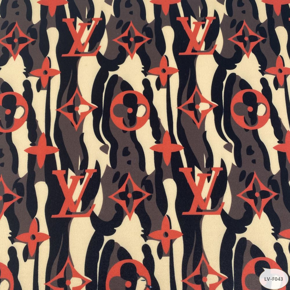 Designer inspired LV Pattern digital printed spandex knitted fabrics