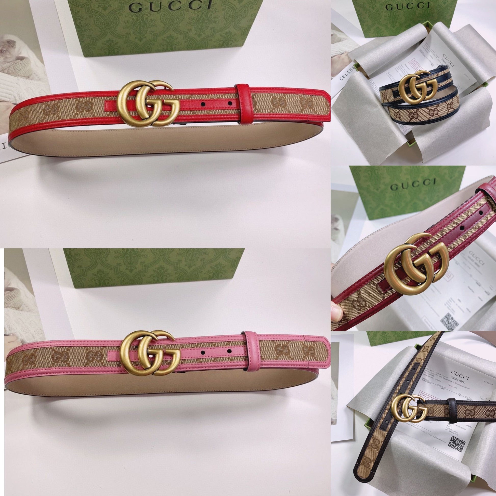 Gucci GG Buckle Jacquard Canvas Genuine Leather Edge Belt ITEM NO.: HF-BT011