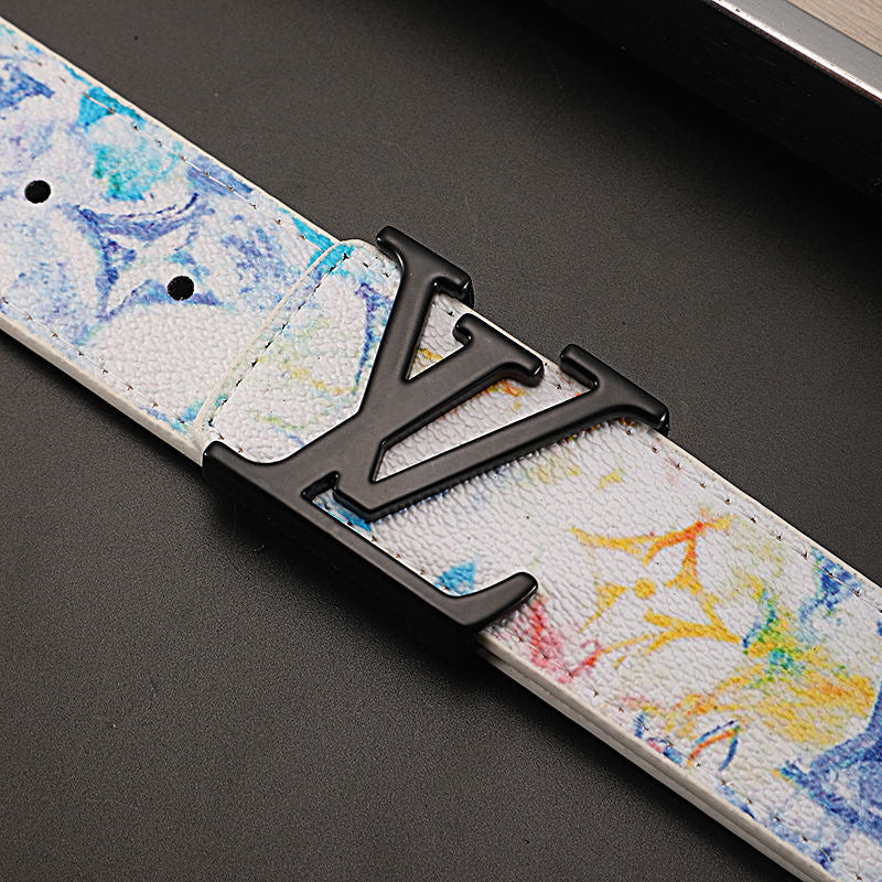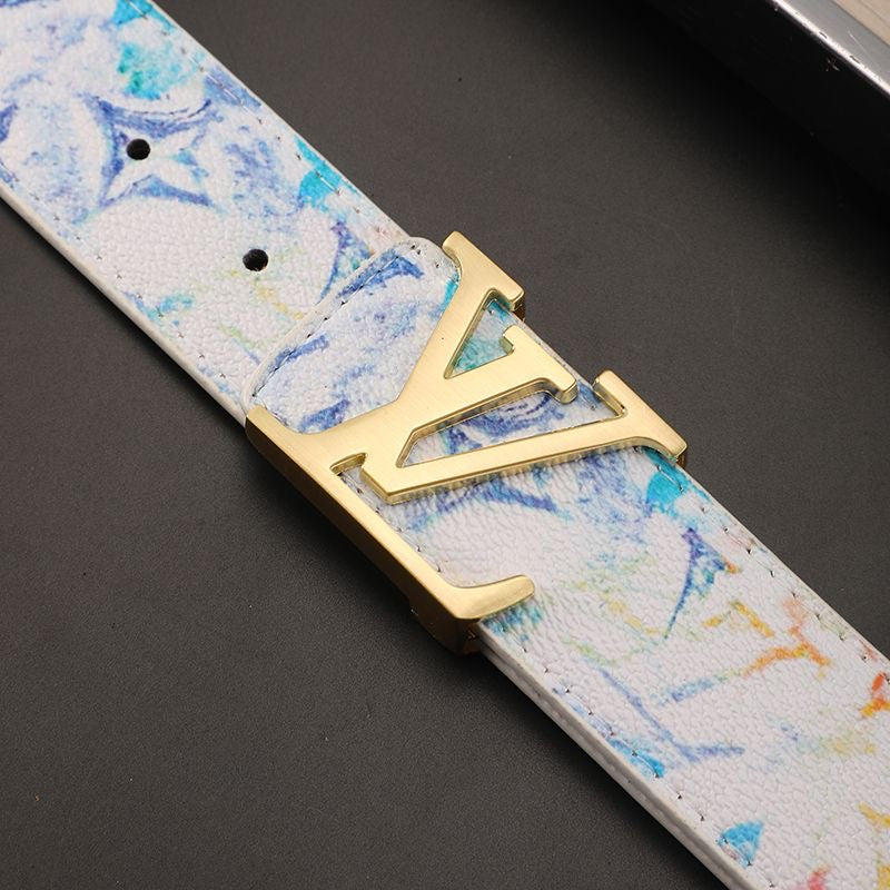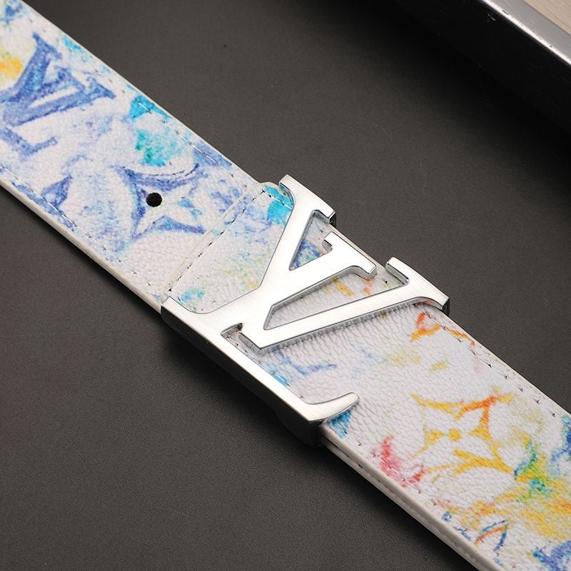 High Quality Custom Design White Tie Dye LV Buckle Leather Belt ITEM NO.: HF-BT055